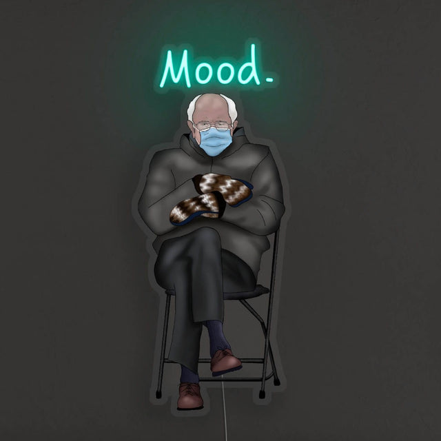 - Image of Bernie is a hand drawn digital reproduction and is printed on the sign's backing. The Mood text or light rays are the only part of the product that illuminate.